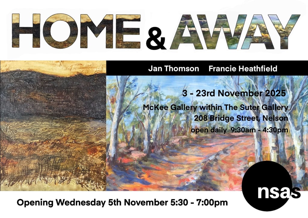 First up is “Home and Away" - a joint show with my friend Francie Heathfield, a very talented Nelson artist. We’d love you to join us for the opening celebration on the 5th of November if you can .