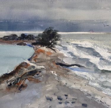 This has been a busy month as I helped curate and hang the WCNZ Splashing Out exhibition in Marlborough. We hung around 120 paintings from all over NZ , as well as from UK guest artist Hazel Soan – it was a real treat to work with paintings from painters of all abilities and experience , some exhibiting for the first time . And even nicer to see some of the newbie’s paintings sporting red stickers. A great week of outdoor painting, workshops and social get togethers and I even managed to sneak off painting a couple of times as well as attending a landscape workshop run by Charlotte Hird (who also is an indigo fan).