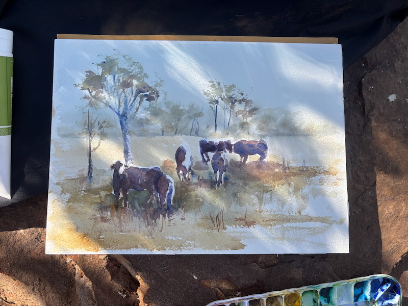 On the next day on west to Judburra/Gregory National Park, where we camped at a DoC site, very peaceful and hot. A Willy Wagtail visited us while Robbie cooked our tea on the fire. Lots of big Boab trees around us. Next day was across to the Keep River NP, up through dramatic escarpments and past lots of Brahman cattle grazing beside the road. We drove out into the NP to the Jarnem campsite , a lovely spot in the bush , though I wouldn’t like to be out there in a bushfire!